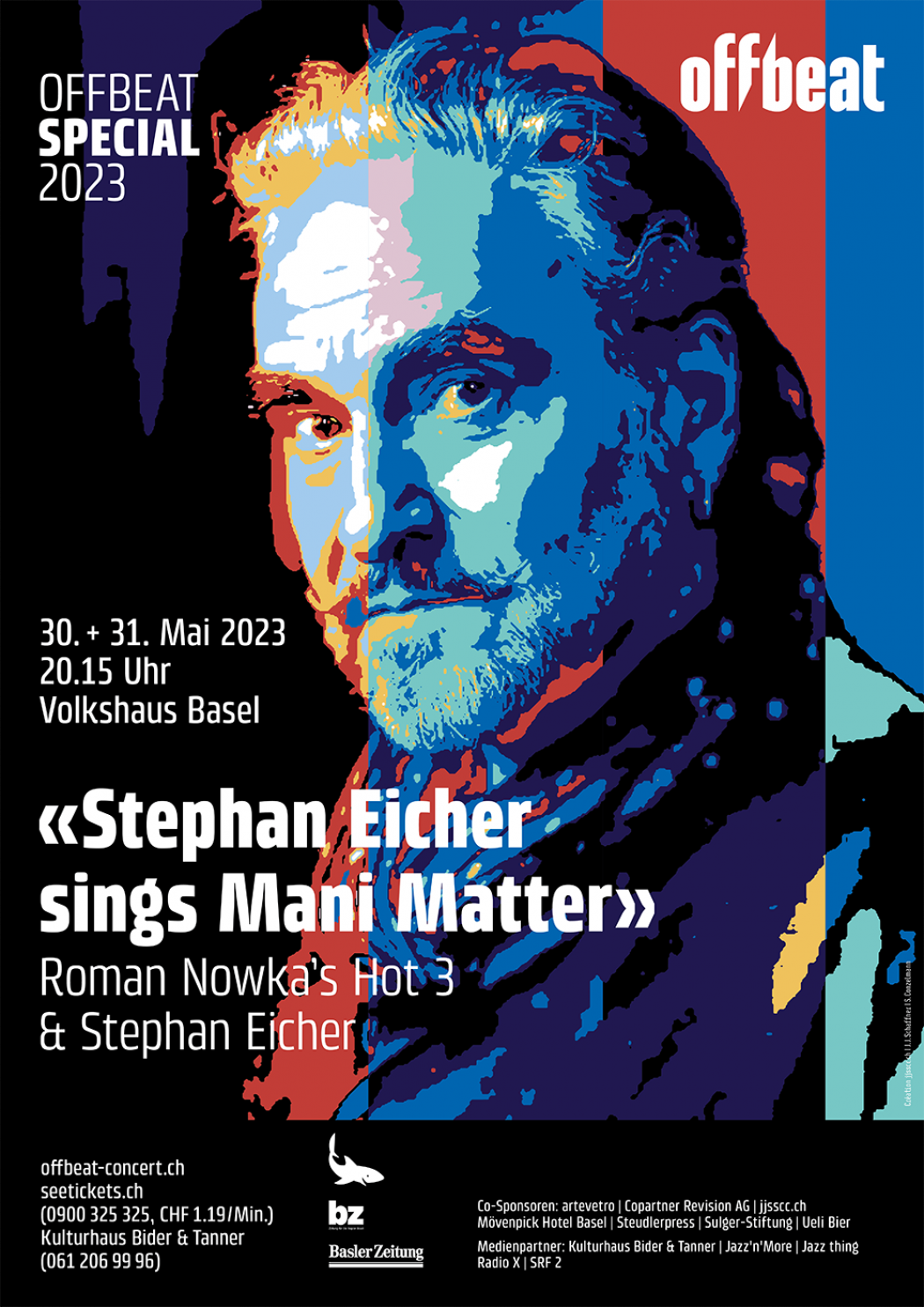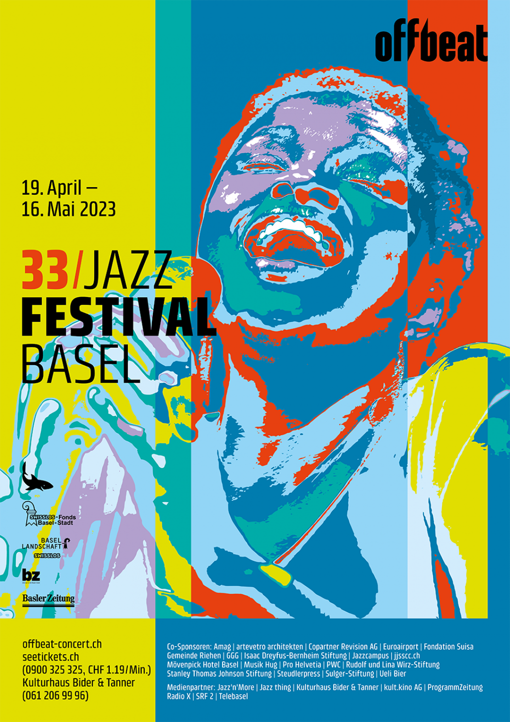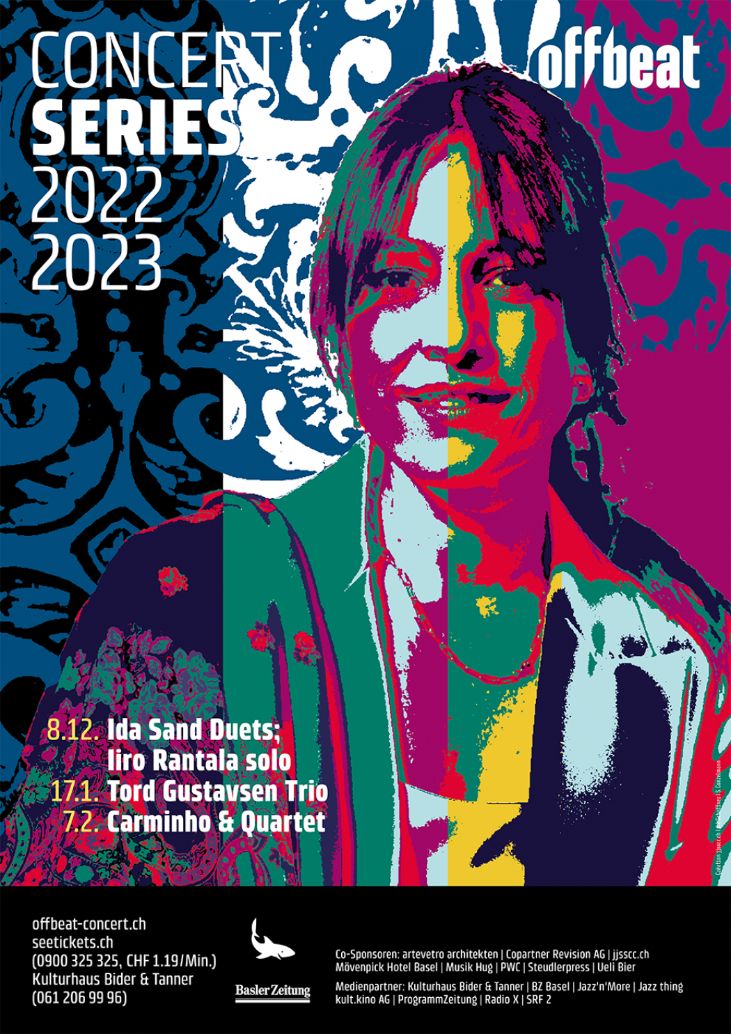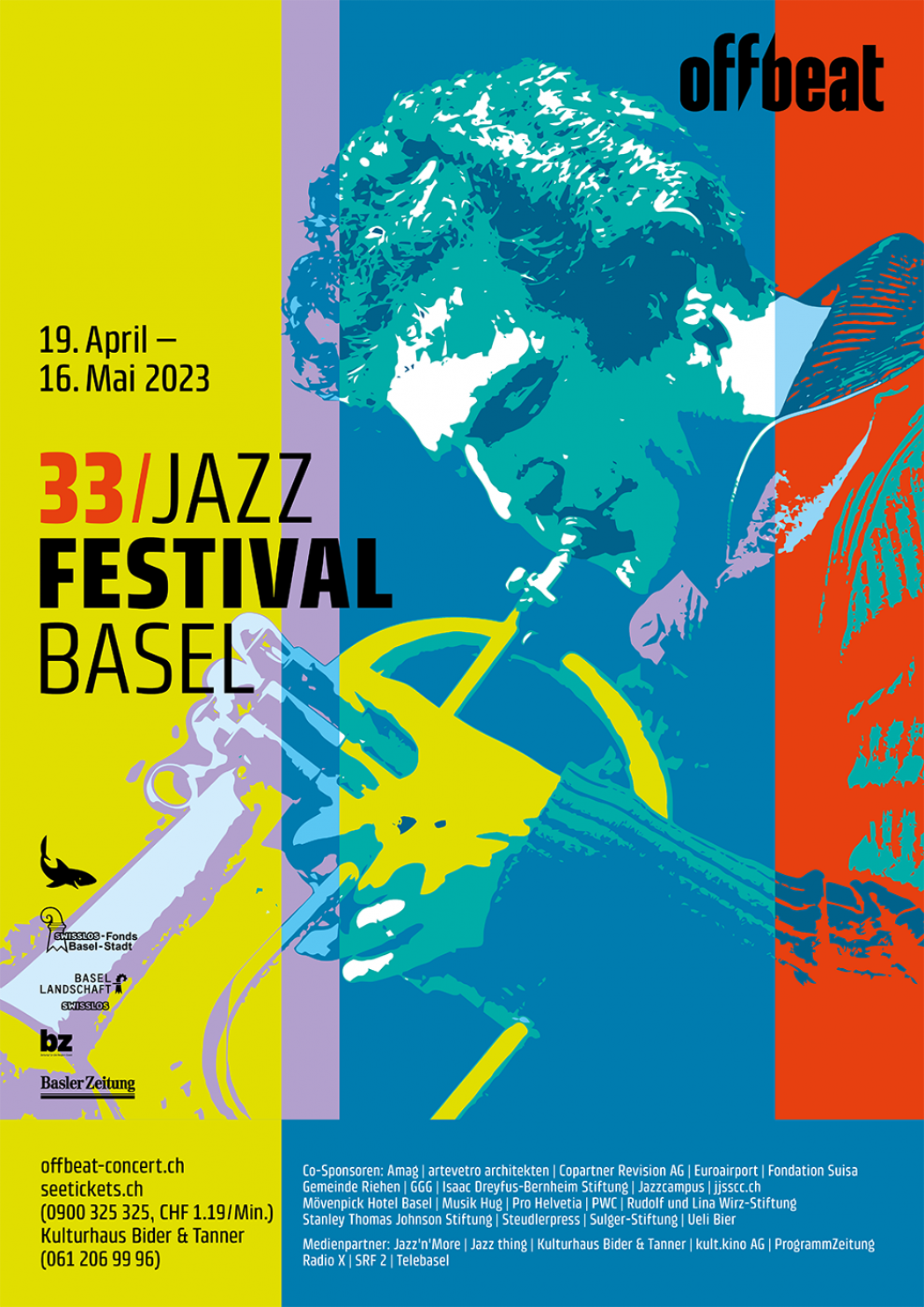 Bereits seit drei Jahren betreuen wir als Kommunikationspartner das Offbeat Jazzfestival und die Series Konzerte. Mit dem von uns kreierten Illustrationsstil, sind viele neue Plakate und andere Werbemittel entstanden. Die Series Plakat sind, mit jeweils auf die Künstlerinnen und Künstler abgestimmte Farben und einer Dominanten gemeinsam Tendenz zu dunklen Tönen, gestaltet. Die Festival Werbung unterscheidet sich mit einer eigenen, bunteren Tonwerte Tabelle von den Einzelkonzerten.