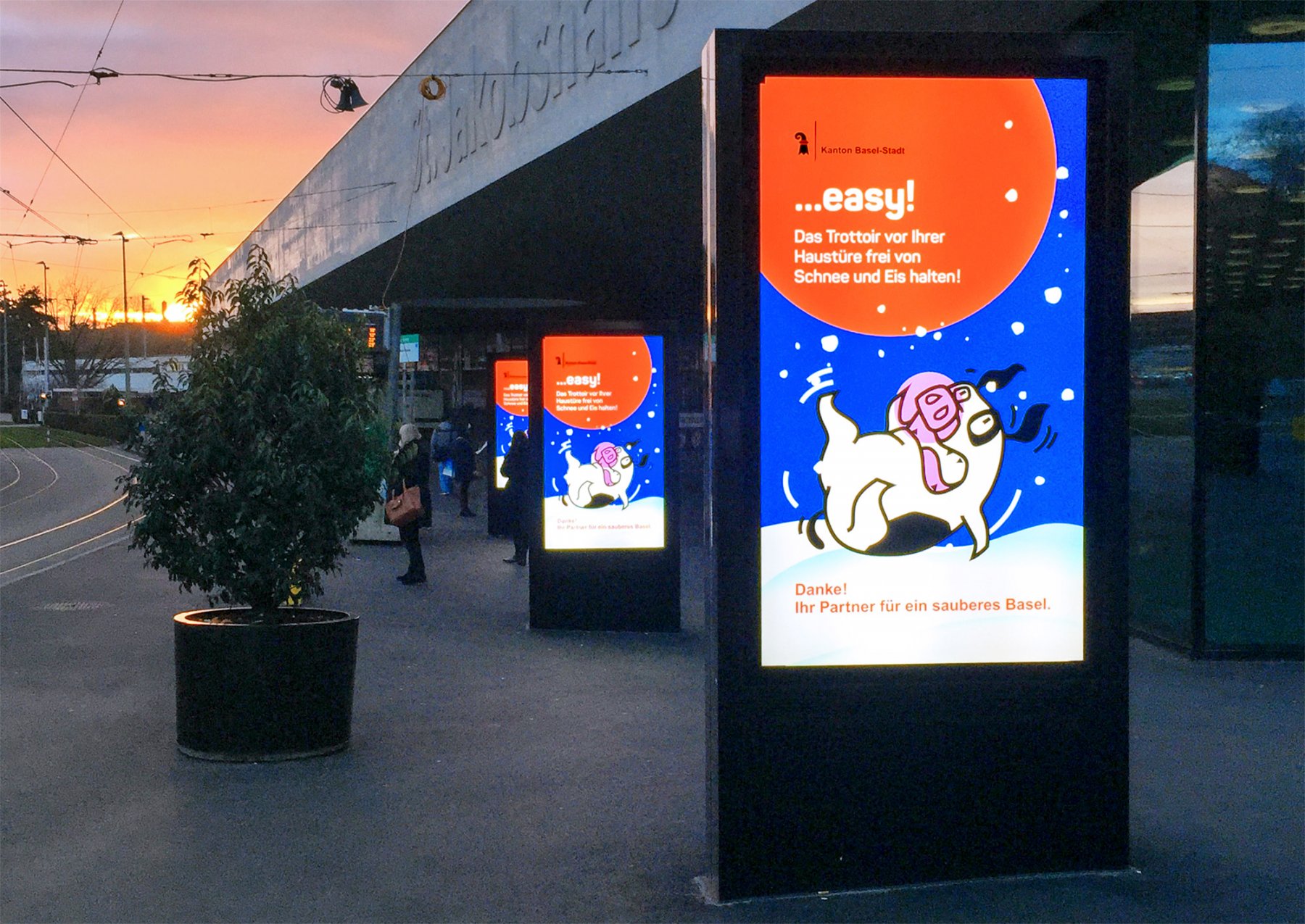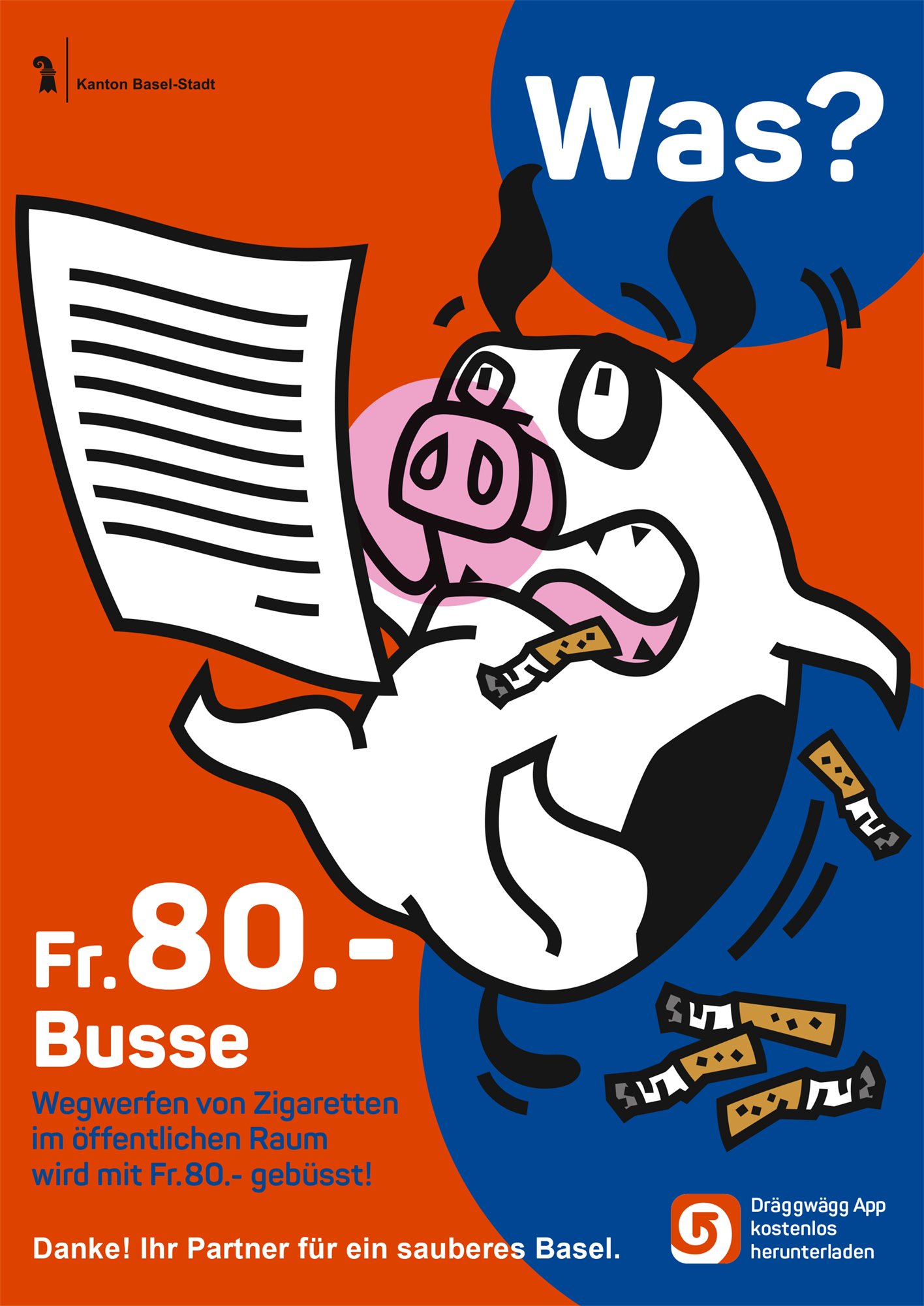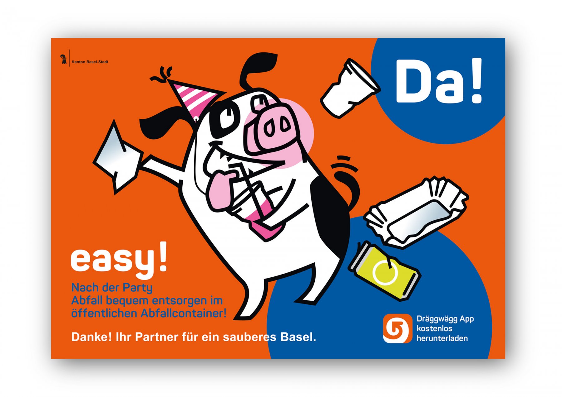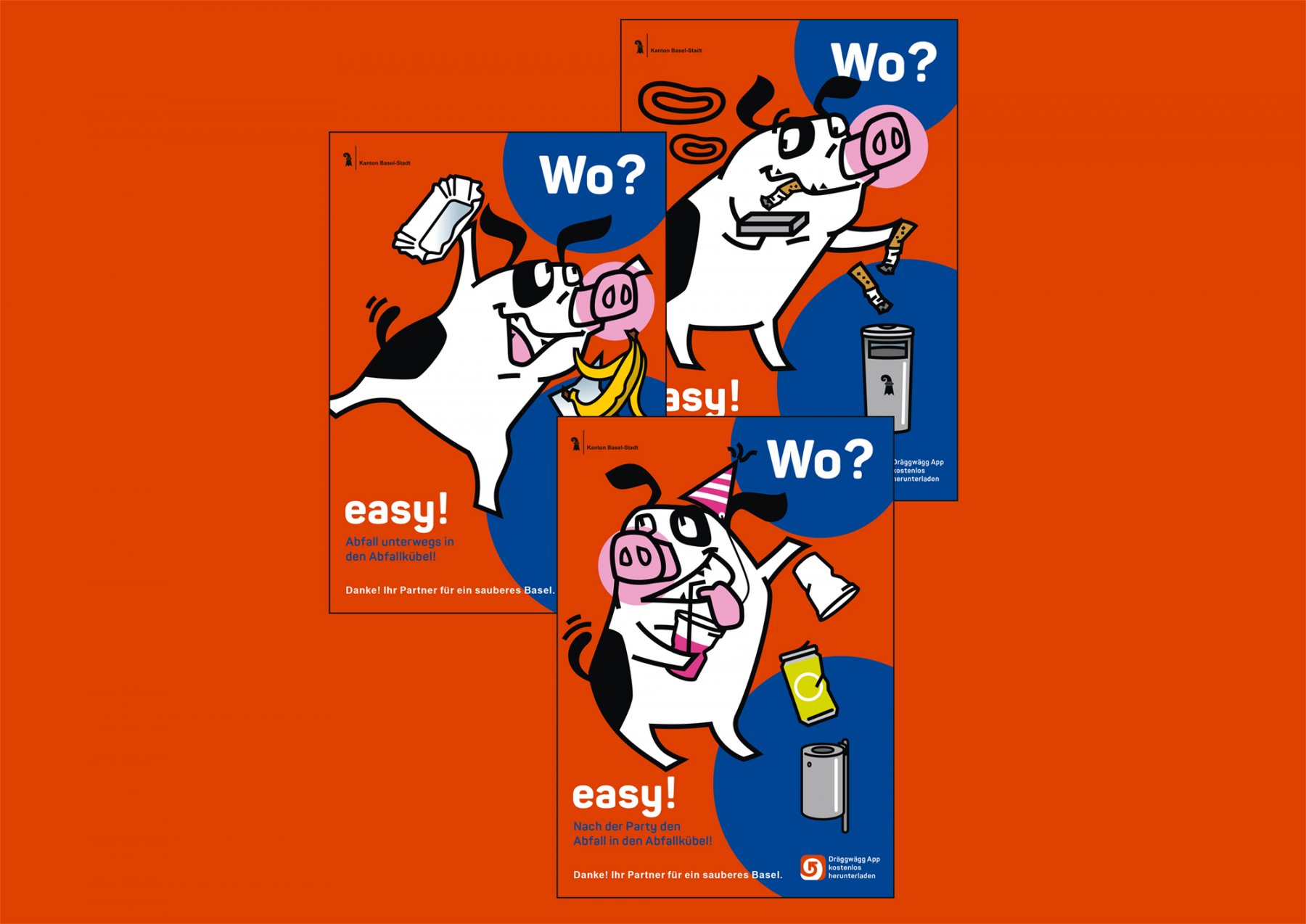 Manchmal muss man die Dinge beim Namen nennen. Die Kampagne des Kantons Basel-Stadt von 2018 bis 2020 gegen Littering auf den Strassen zeigt klar und deutlich die Ursache für den herumliegenden Abfall. Der «innere Schweinehund» sagt einem zuweilen, dass man nichts auf den Boden werfen sollte, aber man tut es eben doch. Mit der humorvoll verstandenen Figur des Schweinehundes wurde intensiv und auf vielen Medien kommuniziert. Mittlerweile kennt diese Ikone jede Baslerin und jeder Basler.
